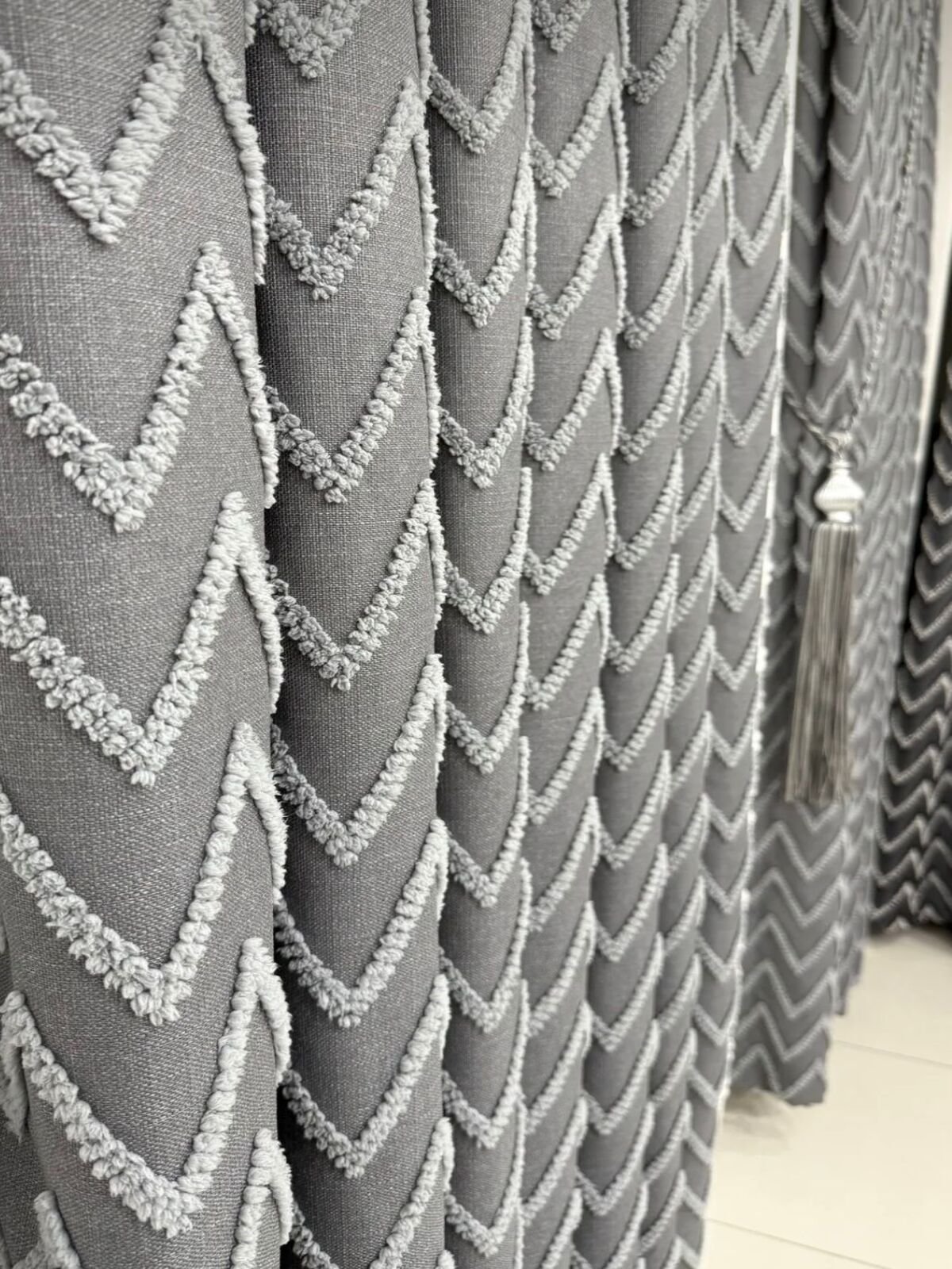 Tüylü Lüks Pano Fon Perde Gri